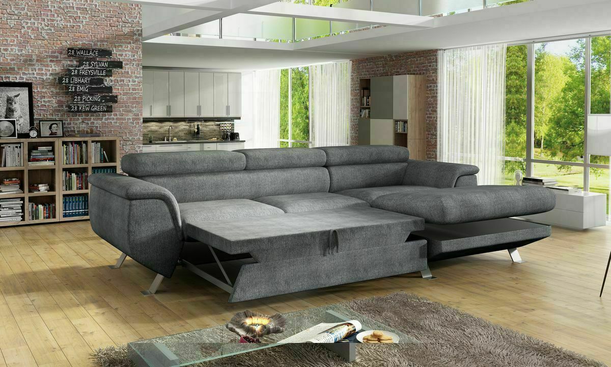 Nottingham corner sofa bed with storage its hand made from best quality materials, this modern model has storage, bed function and adjustable headrests. Delivery and assebling its indlucded in price.